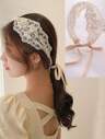 1 st. Tjejer Liten storlek Vit Mössa Med Pärldekorationer , Nät Och Blomma Design , Lämplig För Eller