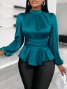 SOLERSUN Fashionabla enfärgade damer Elegant rynkad asymmetrisk hals Snygg och sofistikerad Batwing-ärm Asymmetrisk fåll Satinblus & raka ben Eleganta långbyxor