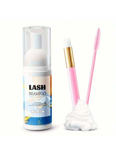 SRCKFIZ Lash Shampoo 60ML Eyelash Extension Cleanser With 2PCS Brushes Lash Cleaning Kit Eyelash Shampoo For Remove Dust Oil For Lash Wash Bath Salon And Home Use - White - View 1