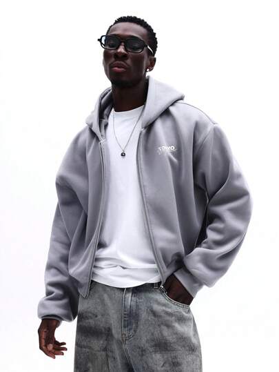 SUMWON Men's Zip Up Hoodie With Chest Logo Long Sleeve Casual Pullover Fall Winter Streetwear Sweatshirt Outerwear - Light Grey - View 1
