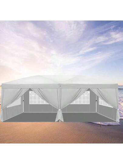 SUNROAD 10 X 20 Feet White Oxford Fabric Folding Garden Shed, 6 Panels And 4 Windows, Plastic Sprayed Iron Pipe, Portable - White - View 1