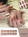Fench Tip Nageldekor Höst Vinter Självhäftande Korta Naglar Nageldesigndekoration Hemma för våren