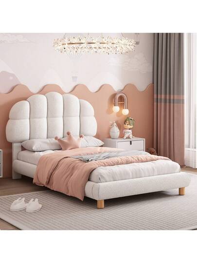 Product Information Item Code: WF314798AAK Product Type: Single Box Product Product Name: 90x200cm Single Bed, Children's Bed, Youth Bed, Upholstered Bed, Wooden Slatted Frame, Circular Fleece, White Main Color: White Main Material: Velvet Product Dimensions Assembled Length (cm): 205.00 Assembled Width (cm): 98.00 Assembled Height (cm): 99.00 Product Weight (kg): 23.00 Package Size Length (cm): 99.57 Width (cm): 54.86 Height (cm): 17.27 Weight (kg): 24.00 Product Features Elegant Styling: The semicircular shape of the headboard and the pastel colors are impressive. The elegant and soft design will appeal to many people. High-quality materials: This bed is made of high-quality circular fleece and MDF, which feels comfortable and soft and offers the warmest care. Sturdy and safe construction: Sturdy and strong slats, a solid bed frame, and central support feet make the entire upholstered bed stable and safe. The padded headboard protects your child from accidentally bumping into the headboard while sleeping, increasing the safety and practicality of the bed. Adequate material: The headboard padding of this bed is partially filled, the bed gutter and headboard are made of thick material, and the bed height is moderate, allowing children to easily get in and out of bed. Easy to install: Detailed instructions and complete parts can help you complete the assembly quickly. The pleasure of installation lets you enjoy the