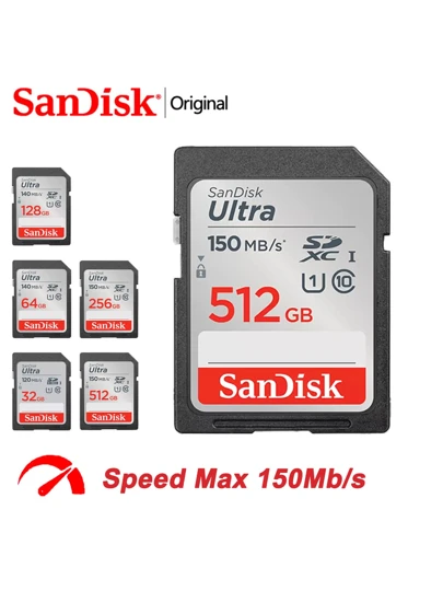 SanDisk Ultra SD Card, Memory Card, 512GB/256GB/128GB/64GB/32GB, Compatible With Camera, DV, DSLR, Model C10 U1, Up To 150MB/S Max Speed - Multicolor - View 1