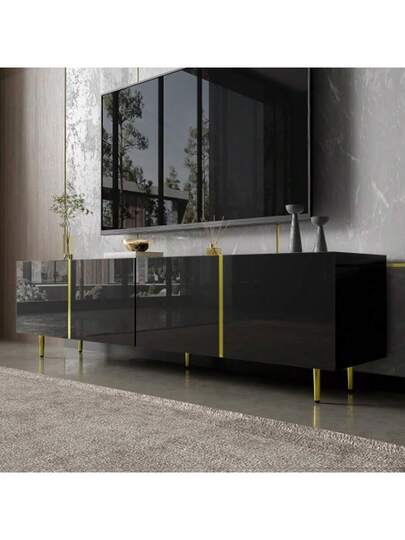 High-gloss finish: Black high-gloss design with a stylish shine, easy to clean and always sparkling clean. Black and gold combination: The perfect combination of black high-gloss finish and gold metal elements creates a modern and elegant look. Storage space: Equipped with two drawers, providing ample space to keep your living room tidy and organized. Adaptable size: Dimensions: 100 cm (L) x 60 cm (W) x 41.5 cm (H), ideal for various living room layouts. Easy to maintain: With a ground of 19.5 cm, robot vacuums can easily pass underneath, making cleaning easier. Protective film: The high-gloss surface is coated with a protective film to prevent scratches during transport and assembly and to maintain its perfect appearance.