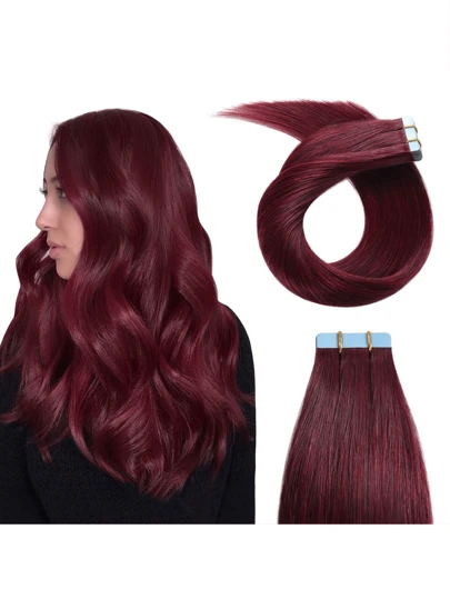 Sömlösa tejpförlängningar, raka äkta hårförlängningar, hudväft, lim, salongskvalitet, för kvinnor, 20 st/30 g, Halloweenkostymer - S99J - Visa 9