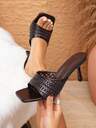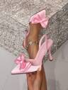 Dammode med spetsiga högklackade sandaler, mjukt satinmaterial, slingback, lämplig för utflykter, banketter, fester