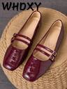 WHDXY Platta skor med fyrkantig tå för kvinnor, Burgundy rosettdekor, mångsidig, bärs med raka byxor och söta toppar, körskor med mjuk sula, eleganta vår-/höstkläder