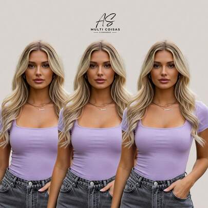 Set of 3 baby look blouses with short sleeves and square front neckline - New arrival for college/work