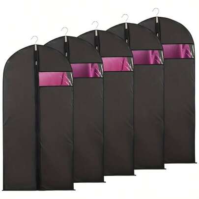 Set Of 5 Gray Washable Garment Bags For Suits And Dresses, Featuring A Transparent Window - Heavy-Duty Storage Covers With Zipper Closure, Clear Storage Bags Suitable For Closets, Travel, And Suitcase Organization - Ideal For Suits, Shirts, Dresses - Multicolor - View 5