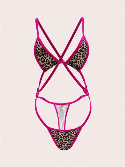 Sexy Leopard Print Lingerie Set, Three-Piece Design, Women's Sexy Lingerie Set, Carnival - Hot Pink - View 1