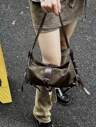 Modeväska i Madewell-stil vintage tygväska/underarmsväska, koreansk litchi-struktur, väska med stor kapacitet, pendlarväska för kvinnor