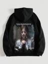 Shwiy Herrhuvtröja med tryckta bokstäver, vintage ramentryck, grafiskt sidofickor, emo-stil, 2000-talsstil