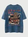 Shwiy Herr-T-shirt med kort ärm och tvättat ramentryck, vintagestil, emo, 2000-talsstil