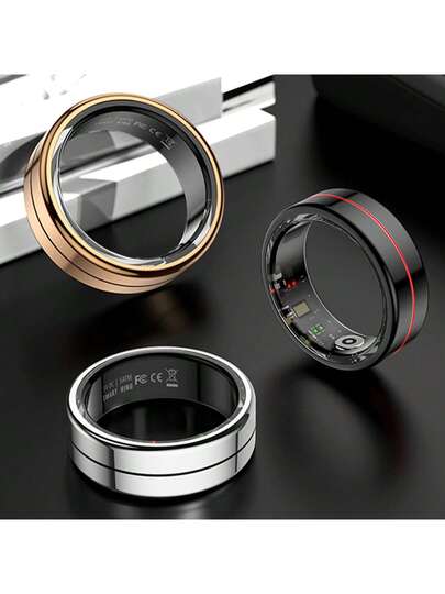 Smart Ring - Fitness- och sömnmätare, steg-, distans- och kalorimätning, magnetisk laddning - Modern design i rostfritt stål, perfekt födelsedags-, nyårs-, julklapp till vänner, perfekt för fester, helgdagar och speciella tillfällen, IP68 vattentät, kompatibel med IOS och Android, ingen prenumerationsavgift, roséguld/vit/svart, storlek 7/8/9/10/11/12 (15mAh uppladdningsbart batteri) - YJH-R04 - Visa 1