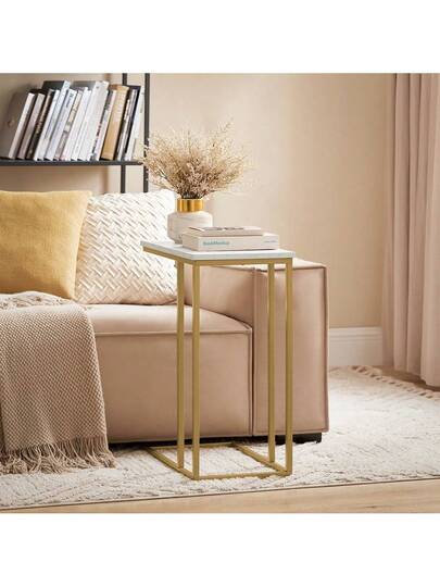 SoBuy FBT87-G Side Table Sofa Table Coffee Table Laptop Table Bedside Table Nursing Table With Golden Metal Frame W X H X D Approx. 48 X 62 X 30 Cm - Gold - View 1