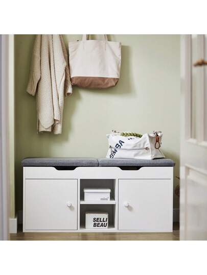 SoBuy FSR96-W, Shoe Rack Shoe Bench Shoe Cabinet With 2 Folding Padded Seats And 2 Doors, W100 X D34 X H48cm - White - View 1