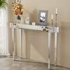 UNHO Mirrored Console Table, Oval Entryway Table, Modern Glass Hallway Table For Living Room, Silver 120*32*80 Cm