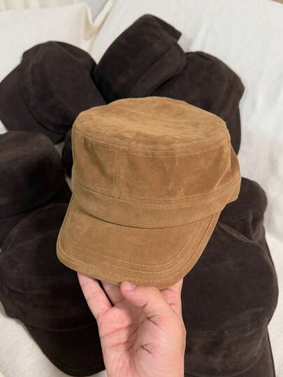 Solid Color Polyester Autumn/Winter New Vintage Flat Top Suede Equestrian Cap, Versatile Painter Beret Hat, Flattering - Multicolor - View 1