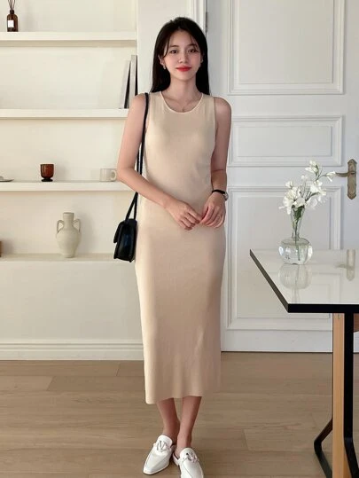DAZY Slätt Enkel Sweater Klänning - Aprikos - Visa 3