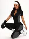 FWH 2pcs/Set Street Style Bodycon Outfit, Includes Thumb Hole Sleeve Jacket With Zipper Front And High Waist Flare Pants With Non-Slip Waistband, Shapewear Jacket With Zipper Detail And Lifting Pants, Boosts Confidence, Women Zipper Front Jacket And Flare Pants Set