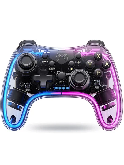 Stk-7039 1pc Transparent Wireless Gamepad With Rgb Light Effects & Burst Fire Function, Compatible With Switch, Pc, Android & Ios Devices - Clear - View 1