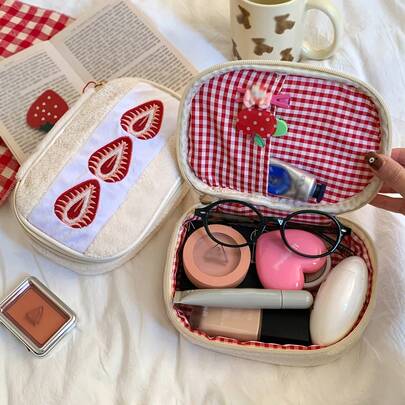 Strawberry Sandwich Plush Pencil Case, Sweet & Cute Storage Pouch For Cosmetics, Stationery, Makeup Brushes, Spacious Capacity, Portable For Travel, Suitable Gift For Friends And Girlfriends