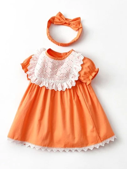 Summer Baby Girl Lace Dress Short Sleeve Princess Dress For Children And Babies - Orange - View 1