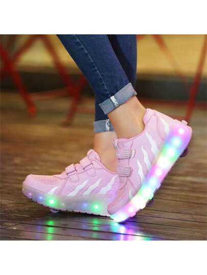 Summer Teenage Students Adult Couple Fashionable Breathable Low-Cut  LED Light Roller Skate Shoes Outdoor Sports Skating Shoes For Men And Women With 2 Small Wheels - Pink - View 1
