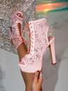 Silver Glitter-plattform för kvinnor med högklackade sandaler med hög klack