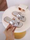 1 par barn moderiktiga casual söta halkfria slitstarka utomhussandaler med metallspännedekor, barnstrandtofflor