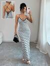 in Collar Women Sweater Dresses 2026 Women's Spring/Summer New Elegant French Striped Halter Backless Knit Mini Green Dress, Suitable For Daily, Dating, Commuting, Beach Vacation, Streetwear, Women's Cruise Wear, Women's Beach Outfit, Women's Vacation Outfit, Women's Holiday Outfit, Y2K