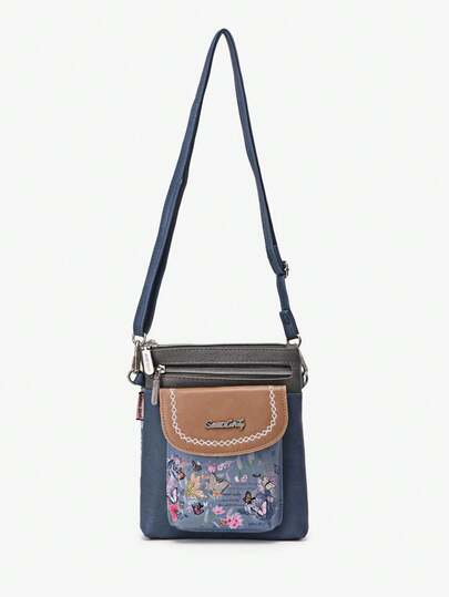 Sweet & Candy Women's Messenger Bag Pu Leather Cute Fun Print Butterfly Original Design Light To Carry Travel School Commuting Retro College Exquisite Commuting - Bleu (Blue) - View 1