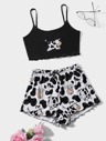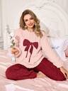 SweetSlumber Söt Rosett Tryckt Kontrastfärg Randig Rosettdesign Dam Nattkläder Set