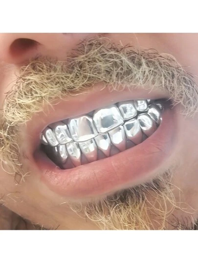 THATBOY 18K Golden Silvery Plated HIP HOP Teeth Grillz Top & Bottom Grills Set With Silicone Real Shiny Vampire Tooth Sets - Multicolor - View 11