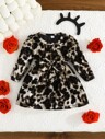 Babyflickor julpläd långärmad klänning, broderad hjortdjurs- och rosettdekorationsklänning i nät, höst