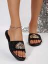 Women's Gold Buckle Strap Flat Sandals, Slip-On Casual Comfortable Plus Size Ladies Summer Slippers, Vacation Style Versatile Fashion Women Slides For Indoor & Outdoor