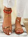 Rosettknut Strass Eleganta Platta & Höga Klackar Fyrkantiga/Runda Tå Öppen Tå Sandaler, Bohemisk Stil För Formella Tillfällen, Fest, Glittrande