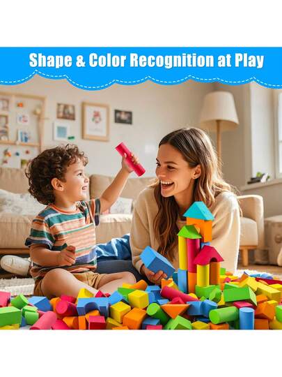 Tecforood Foam Blocks For Toddlers, Educational Toys, EVA Soft Stacking Building Blocks Toy Set, Large Soft Block For Toddler, Early Learning Construction Toys & Birthday Gifts For 3 4 5 6 Years Old Preschool Kids Boys Girls - Multicolor - View 1