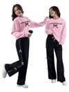 Sparklyn 2pcs/Set Teenage Girls' Sporty Casual Outfit, Colorblock Crew Neck Long Sleeve Letter Print Sweatshirt And Wide Leg Pants Fall Winter