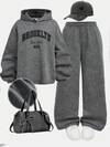 2 Pieces Teen Girl Soft Cute Slogan Bow Print Long Sleeve Hoodie Set, Teen Fashion For Camping Trip, Summer-Fall