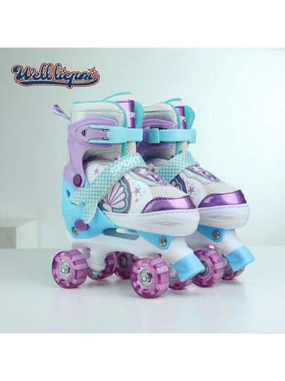 Fashionabla rullskridskor med dubbla rader för tonåringar, lila färg med färgglada blinkande hjul, snäckskal Ocean Element Mermaid Traditionella rullskridskor - Blåröd - Visa 1