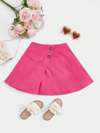 SHEIN Young Girl Comfortable Solid Color Pu Skirt With Bow Decoration For Casual Occasions