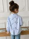 SHEIN Playful Pals Girls' Elegant Embroidered Floral Collar & Cuff Long Sleeve Button-Front Casual Princess Blouse, Suitable For School, Vacation, Travel, Birthday Party, Spring/Autumn Fall Winter