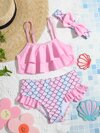 Young Girl Fish Scale Print Tiered Layer Bikini Set Summer Beach Kids Swimming ,Kids Beachwear