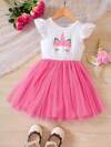 SHEIN Glamorique Kids Ung flicka Tecknad Grafik Kant med Volanger Nät Fåll Klänningar