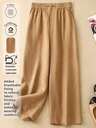 Enkla, bekväma, avslappnade, andningsbara linnelångbyxor med resår i midjan för kvinnor, designade för vår, sommar och höst. Byxorna har handsydda knappdekorationer.