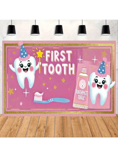 Tooth Celebration Background - Polyester Party Banner With Gold Stars And Cartoon Tooth Design, Suitable For Birthday, Anniversary, Home, Garden And Photo Booth Decoration, No Power Required - Apricot - View 1