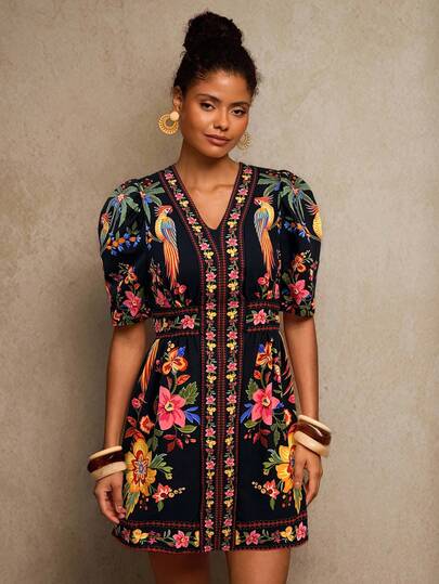 Travachic V-ringad kortärmad figurnära miniklänning för kvinnor - Svart - Visa 1