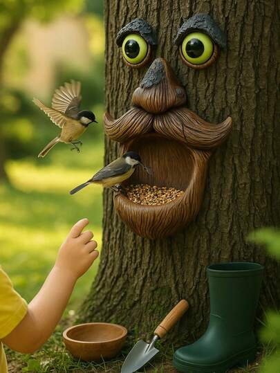 Color: Multicolor | Size: Tree Face Bird Feeder B